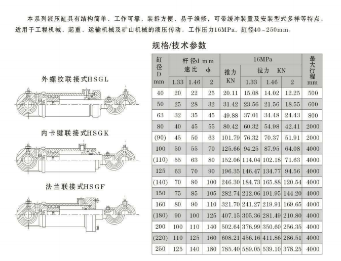工程液壓油缸參數(shù)大全